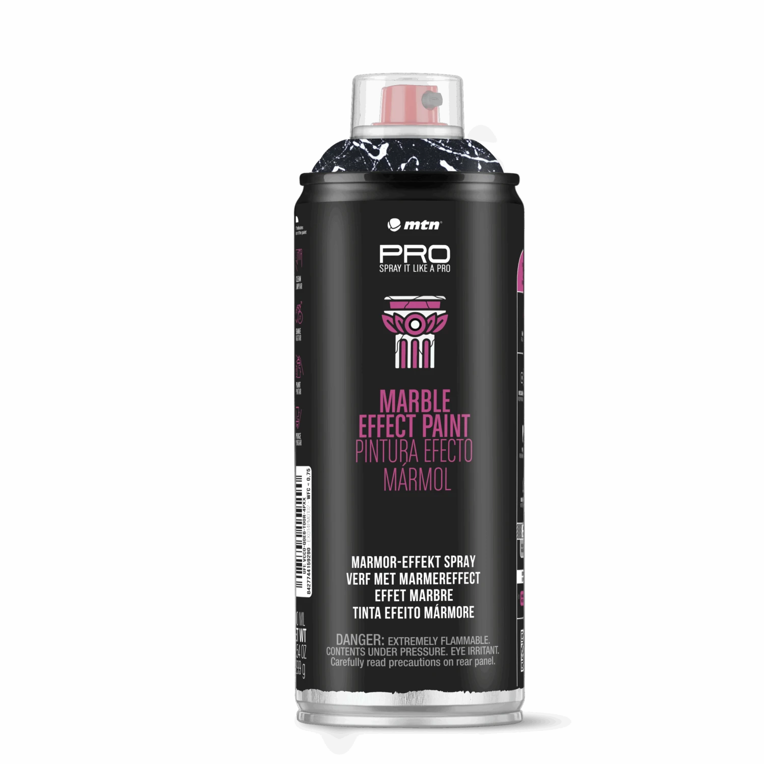 The MTN PRO Marble Effect Paint is a decorative spray paint, based on acrylic solvent, which lends a marble-like appearance to all kinds of surfaces. Thanks to its characteristics, it can be applied to metal, most plastics, stone, ceramics, glass and other pre-painted surfaces.